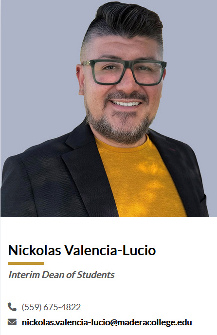 State Center Community College District (SCCCD) - Fresno City College (FCC) - Madera Community College (MCC) - Clovis Community College (CCC) - Reedley College (RC) - Dr. Carole Goldsmith - Chancellor Goldsmith - godmother Goldsmith - La Nina Goldsmith - Magdalena Gomez - Danielle Parra - Robert Fuentes - Austin Ewell - Deborah Ikeda - Nasreen Johnson - Destiny Rodriguez - Noel Reyes