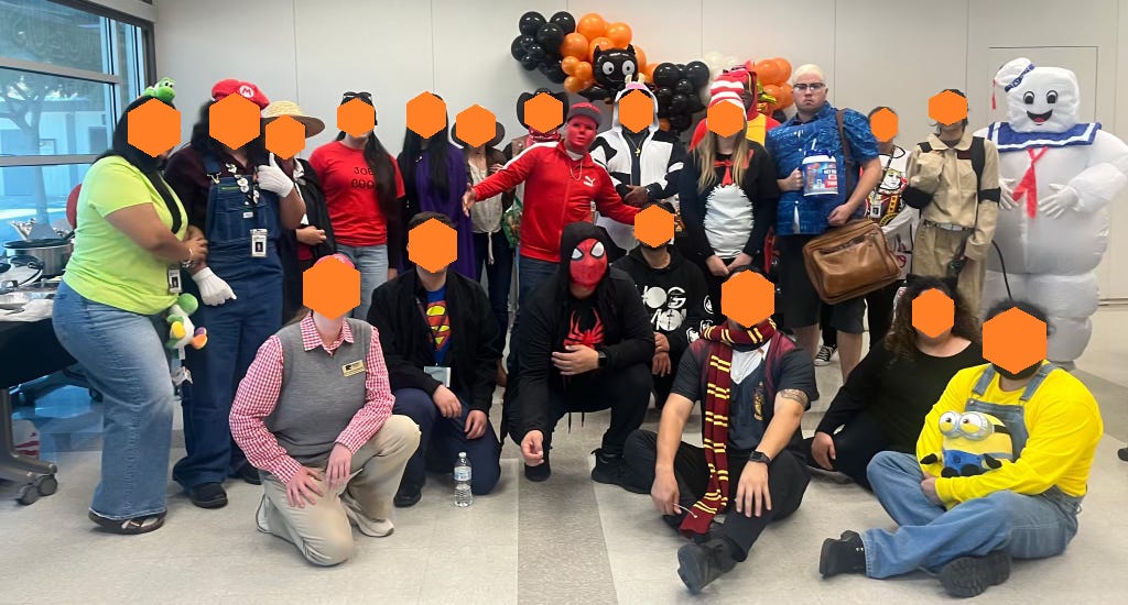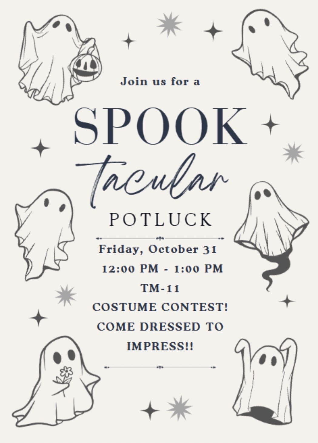 Burkarth attended a potluck event held in room TM-11 from 12 to 1 p.m., which was advertised as a “costume contest” and attended by a select group of faculty, some students, and many classified professionals. [image below]