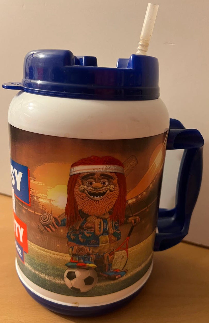 5. Most tellingly, he carried a distinctive 64-oz AM/PM TOOMGIS promotional jug, known to be Kandarian’s signature item for years. [images below]