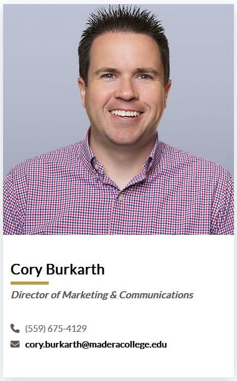 In this article, we focus on two administrators who trespassed into this well-marked forbidden territory, earning a real-world lesson in cause and effect: Mr. Cory Burkarth, Director of Marketing & Communications at Madera Community College (category four), and Dr. Ángel Reyna, President of Madera Community College (category three).